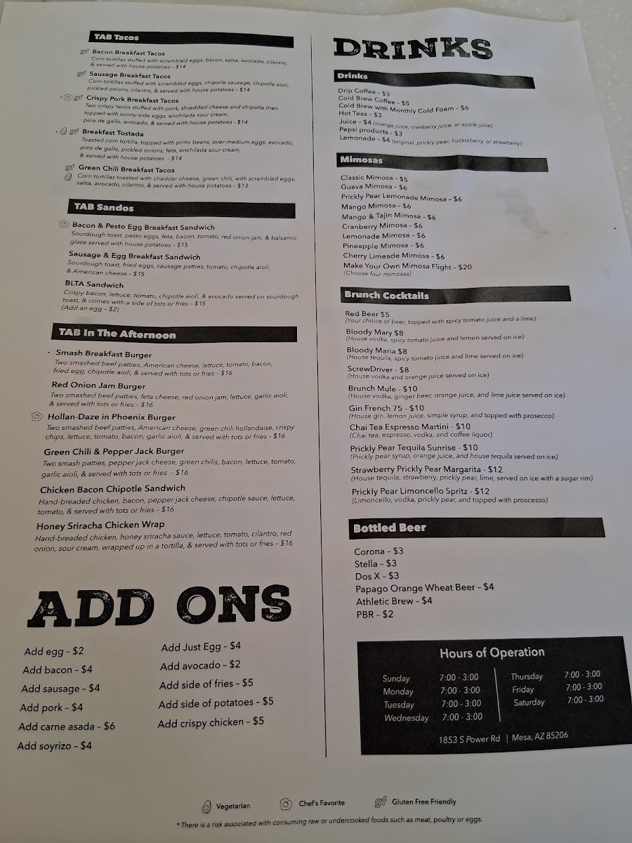 ThanksABrunch House Menu - TAB Weekly Specials!!!!